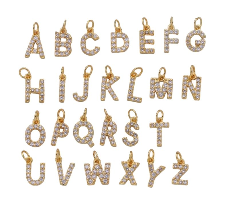 Enhance your jewelry collection with the Alexa Leigh exquisite 14k gold filled crystal letter charms, each measuring 10mm. Perfect for personalization, these charms can be effortlessly added to any bracelet, necklace, or earring, adding a touch of elegance and individuality to your accessories. Elevate your style with these versatile and dazzling charms, designed to complement any ensemble.