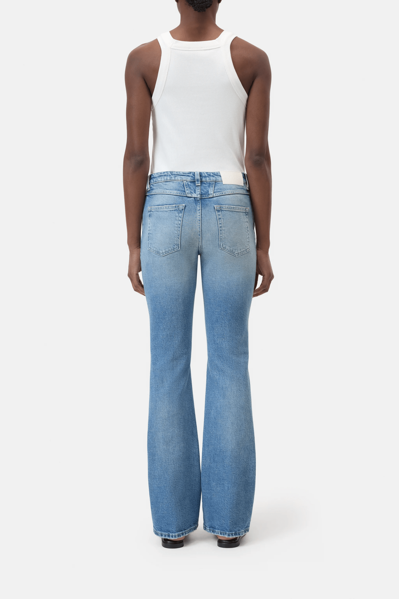 The Jovanna jeans utilise authentic bright blue denim with balanced fading, whiskering, and a warm beige tint, creating rich highs and lows for a worn-in feel. The flared denim style has a low waist and regular leg length. The five-pocket design incorporates a subtle crosshatch texture throughout the denim. Made in Italy.