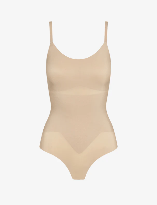 Commando's Zone Smoothing Bodysuit features our signature raw-cut hem and thong bottom and adjustable straps for a customized fit. This smoothing bodysuit features all around medium compression plus extra-targeted smoothing properties through zoned smoothing panels for a seamless and smooth undergarment effect. This is where compression meets comfort.