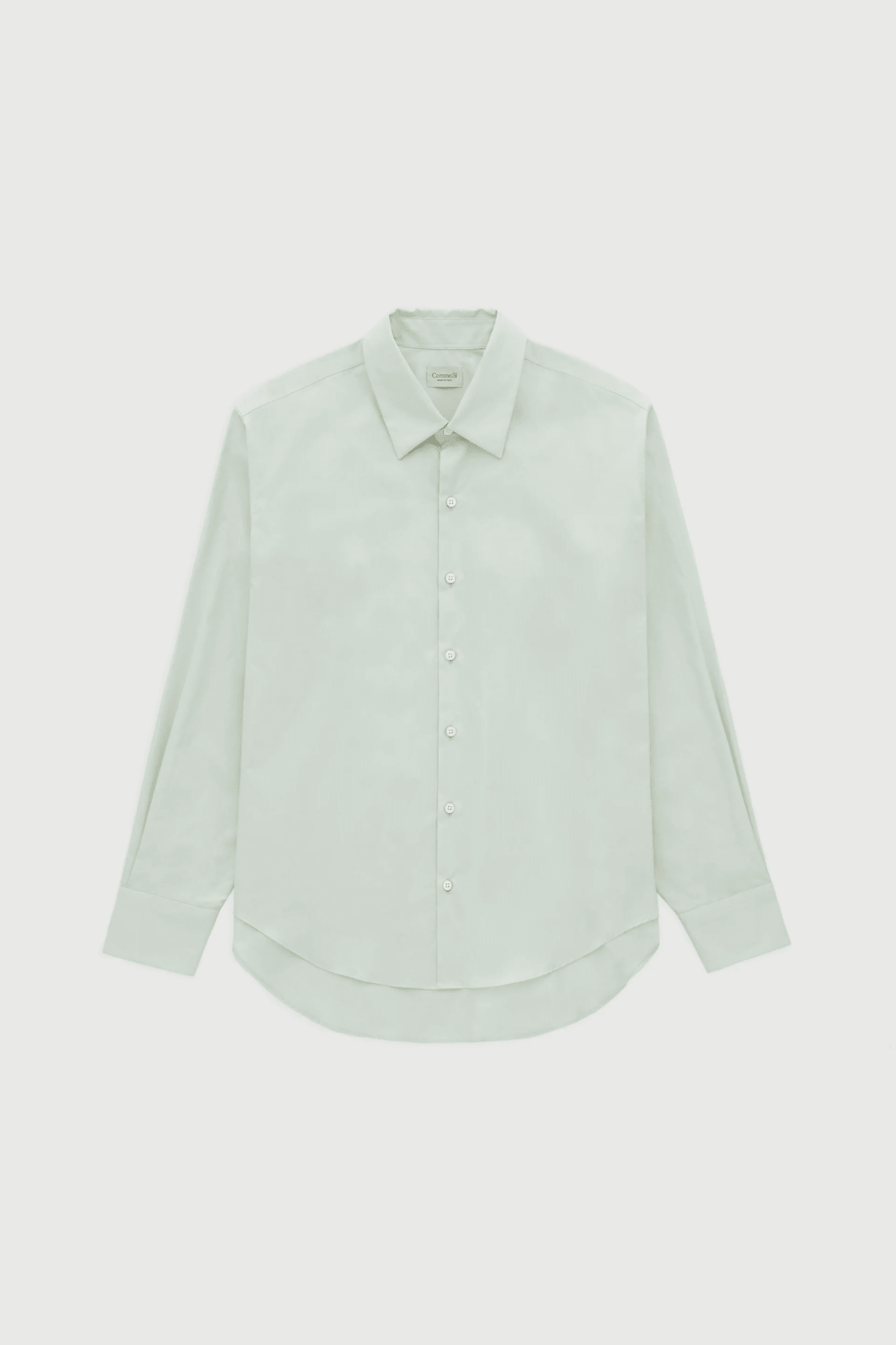 100% Italian Cotton Poplin. OEKO-TEX certified. Mother of pearl buttons on placket and cuffs. Back yoke with box pleat. Cut in a relaxed shape with wide body. Made in Italy.
