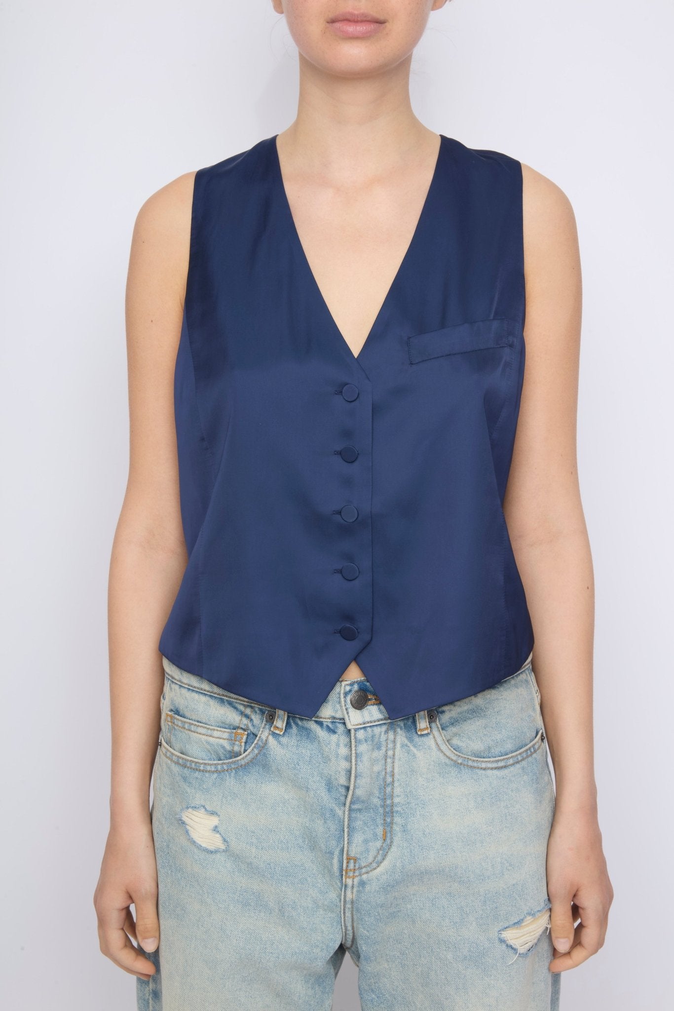 Vest Emaux Satin in Marine - XS is backordered and will ship as soon as it is back in stock.