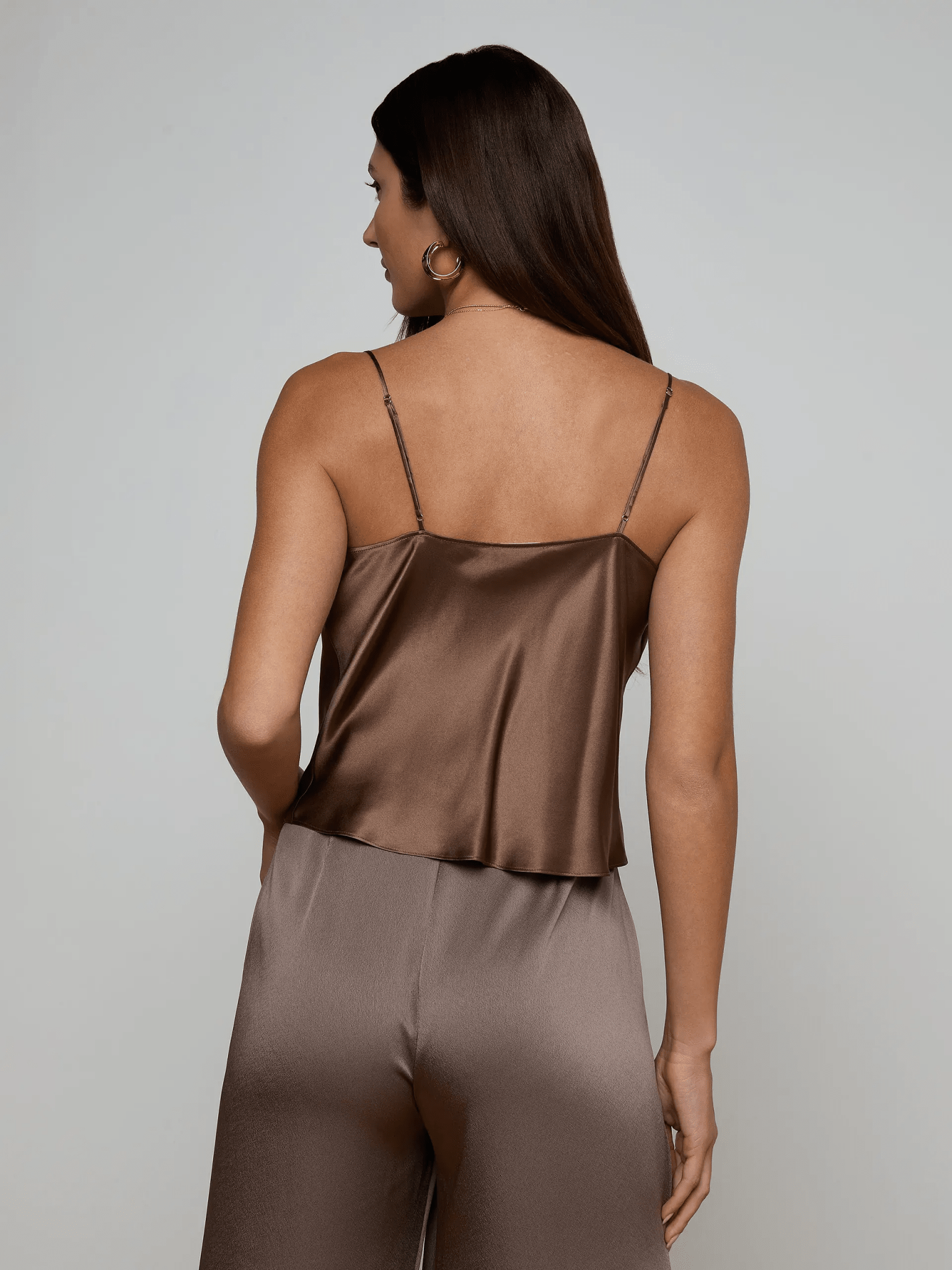 The Calista silk camisole is a closet essential. Finished in an easy cropped length, it pairs well with everything from jeans and trousers to skirts. Now back in cardamom brown.