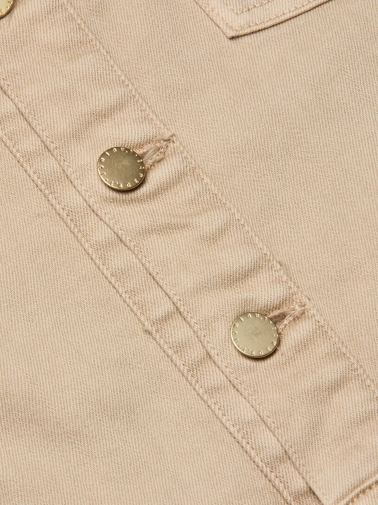 A new take on the jean shirt jacket, in neutral tan denim. The Kirstie delivers a cropped, short-sleeve silhouette. Classic utility details—chest pockets, a pointed collar, and logo-embossed buttons—ground the look, while the clean proportions make it an easy layer for warm-weather dressing.