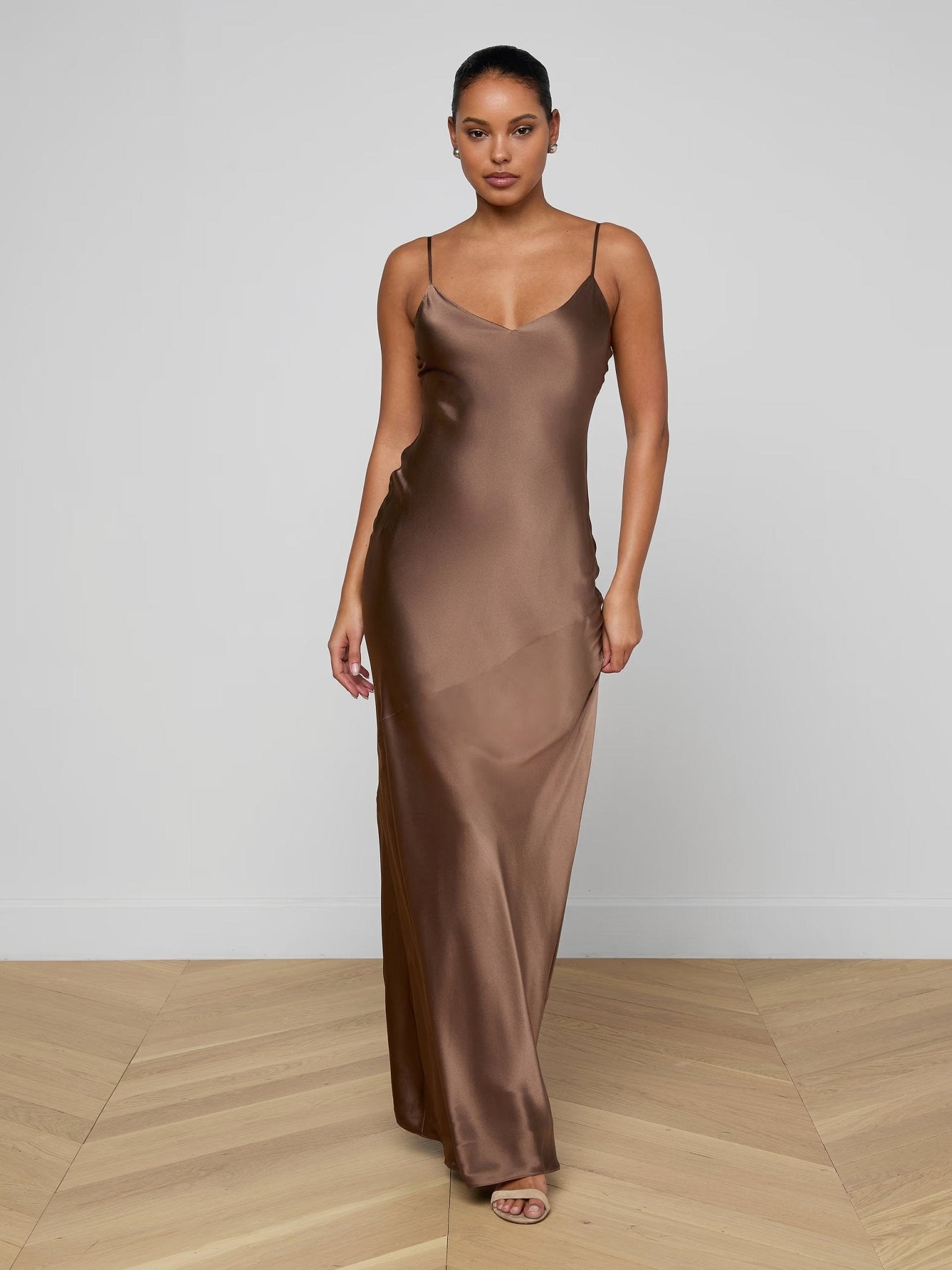 All understated glamour, our signature silk slip gown is back in rich brown. The Serita dress is an all-time L’AGENCE bestseller and perfect for every event. Pair it with heel and drape a blazer over your shoulders for the ultimate wedding guest look.