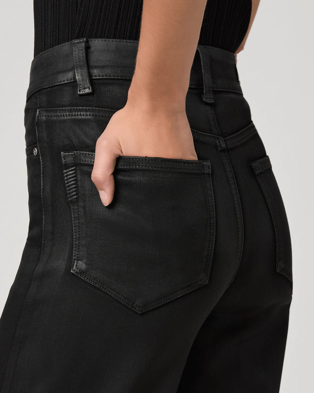 Sasha is our high-rise wide leg with a fitted top block and a slightly relaxed fit. In classic black with a 32" inseam, this super flattering style is cut from our coated TRANSCEND denim, the original high-stretch fabric that redefined comfort in denim.