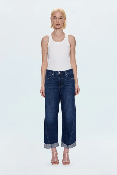 Your new go-to for effortless style. Kacey sits as a comfortable mid rise with an easy boyfriend fit and relaxed silhouette, finished with a 26 1/2" inseam. The stylish cuffed hem adds intentional finishing while thoughtful seaming details subtly elongate your figure. Crafted from lightweight rigid denim in Cultivate, an indigo wash that feels both versatile and refined.