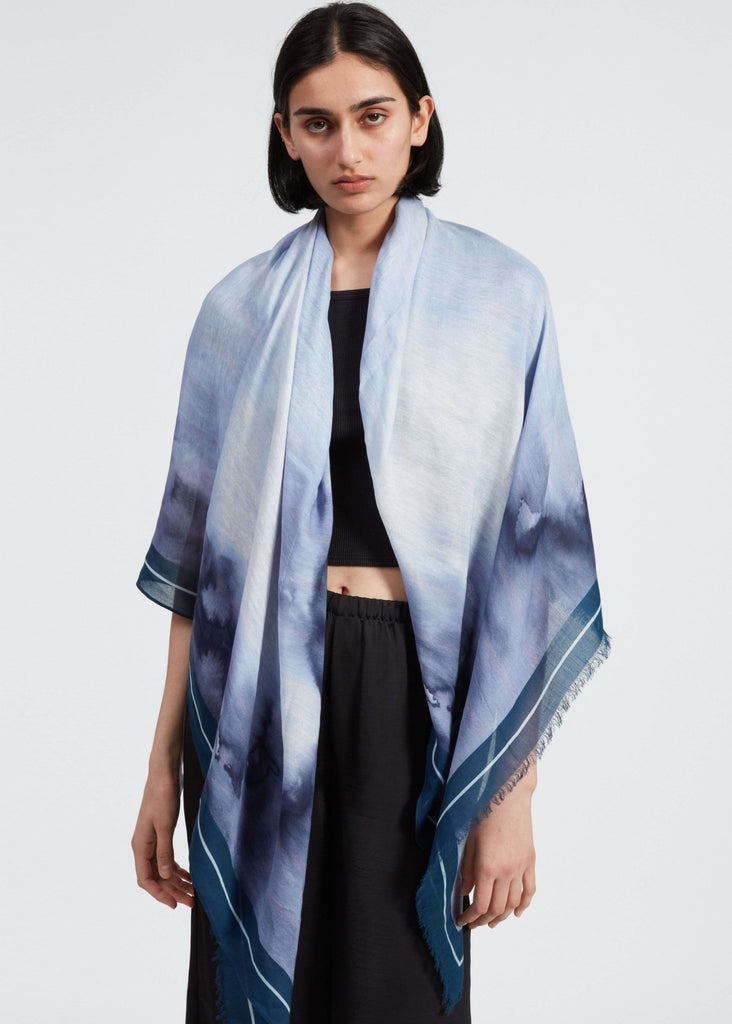 Harlow Scarf in Blue Multi is backordered and will ship as soon as it is back in stock.