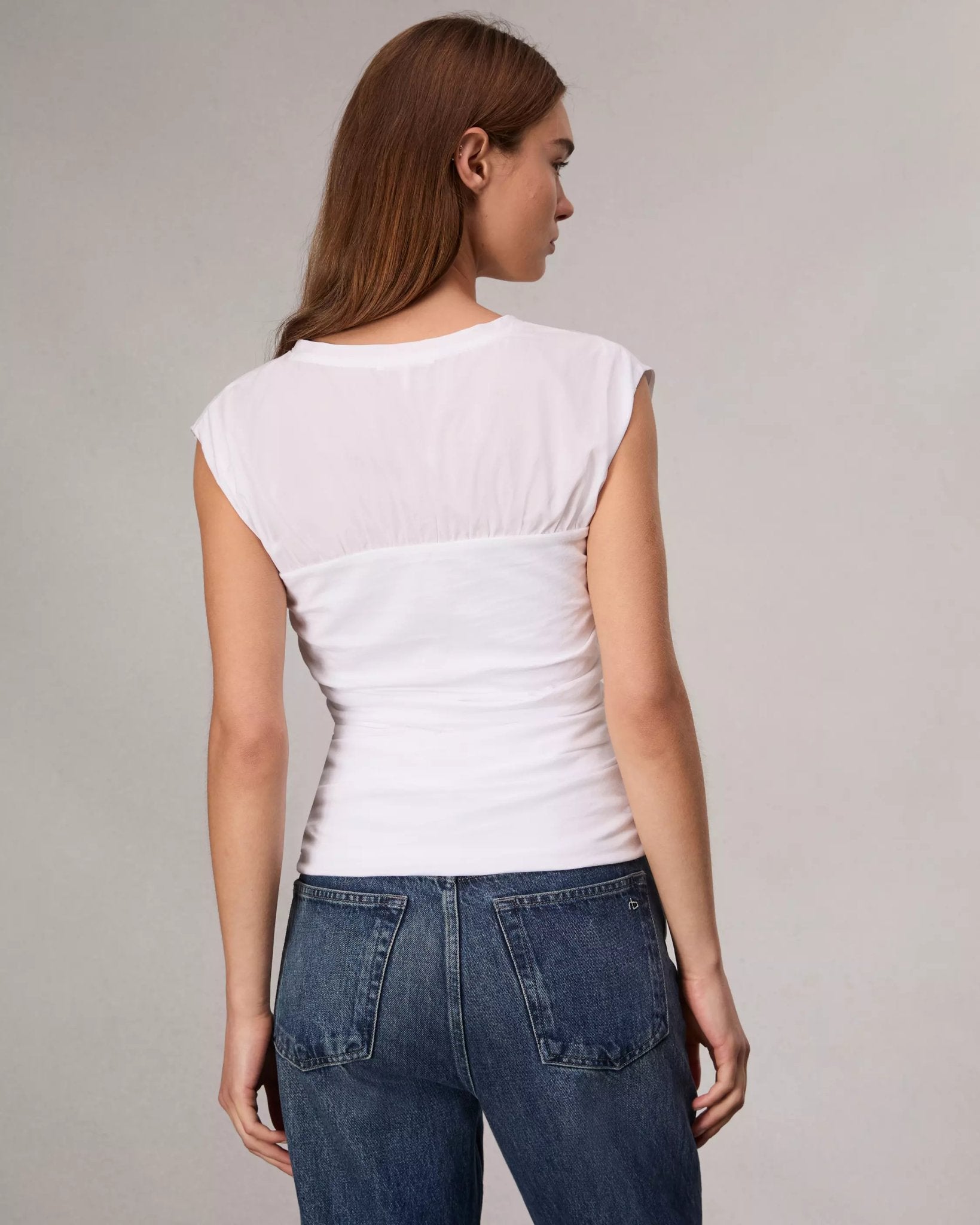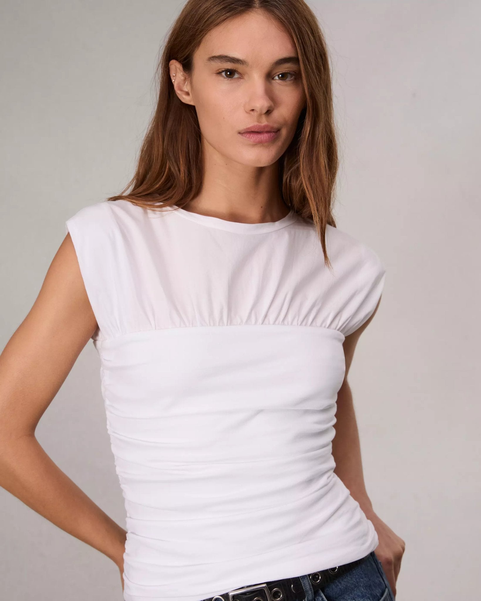 Poplin and jersey combine in this slim-fit cotton top, which features a banded bodice plus shirring and ruching details for the perfect figure-flattering look.