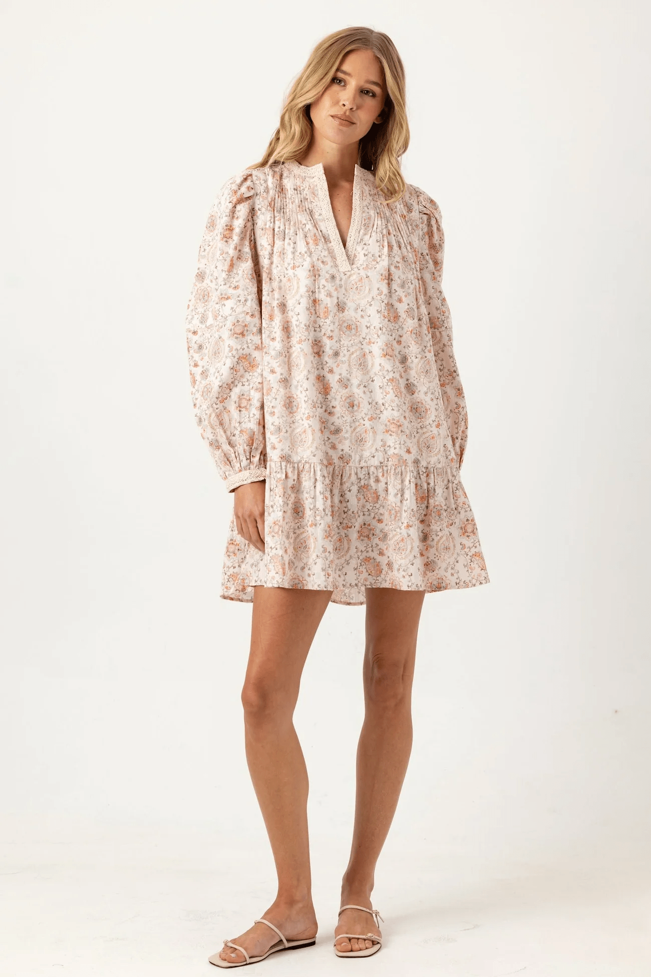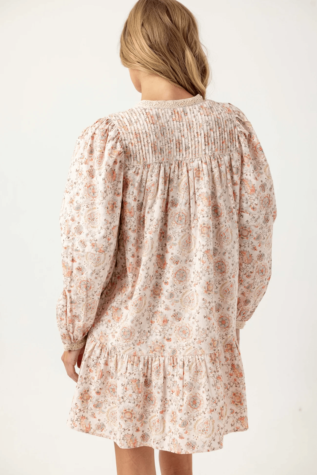 • Feminine pintucks at the neckline and back yoke add texture