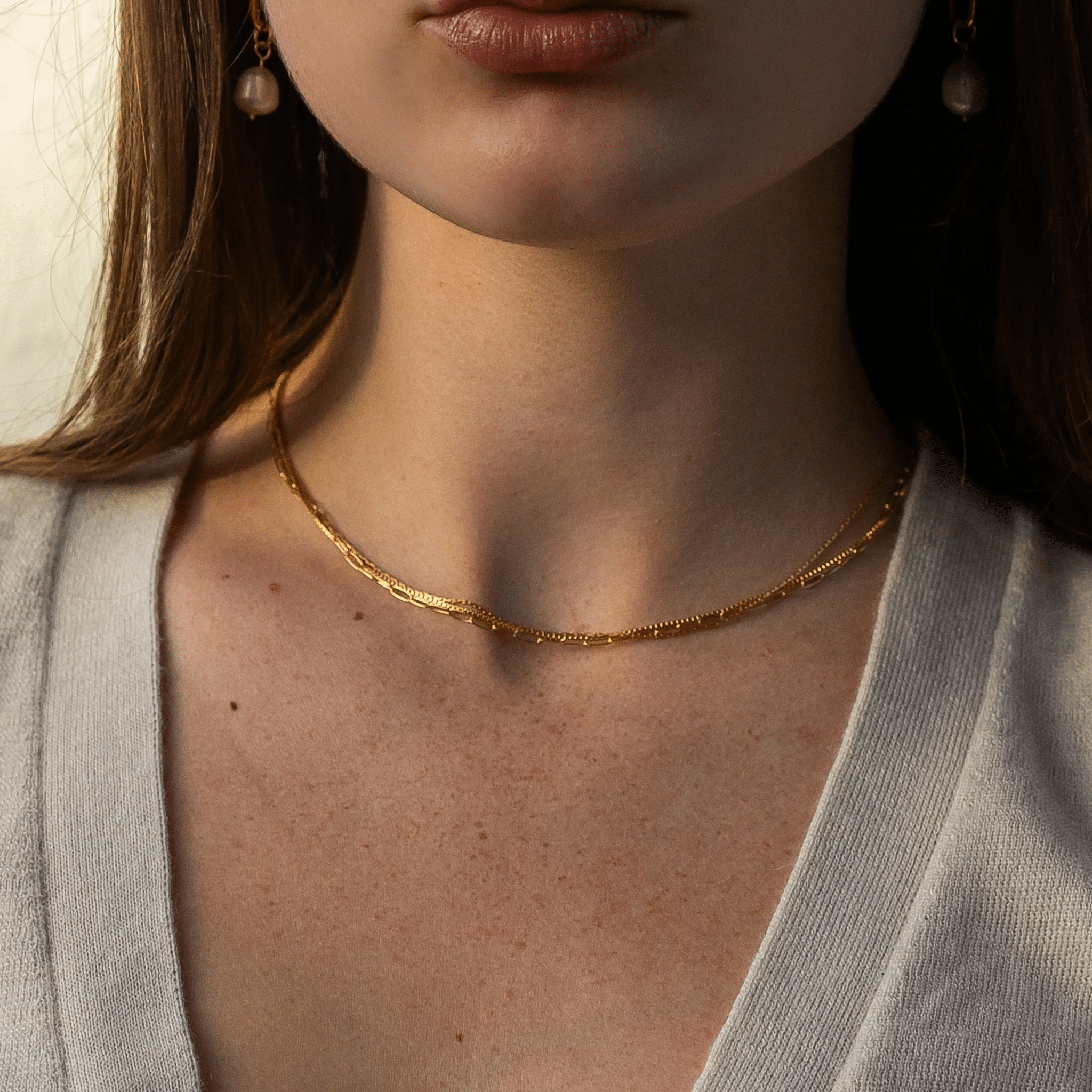 Rosalie Triple Strand Necklace in 14k Gold Plated