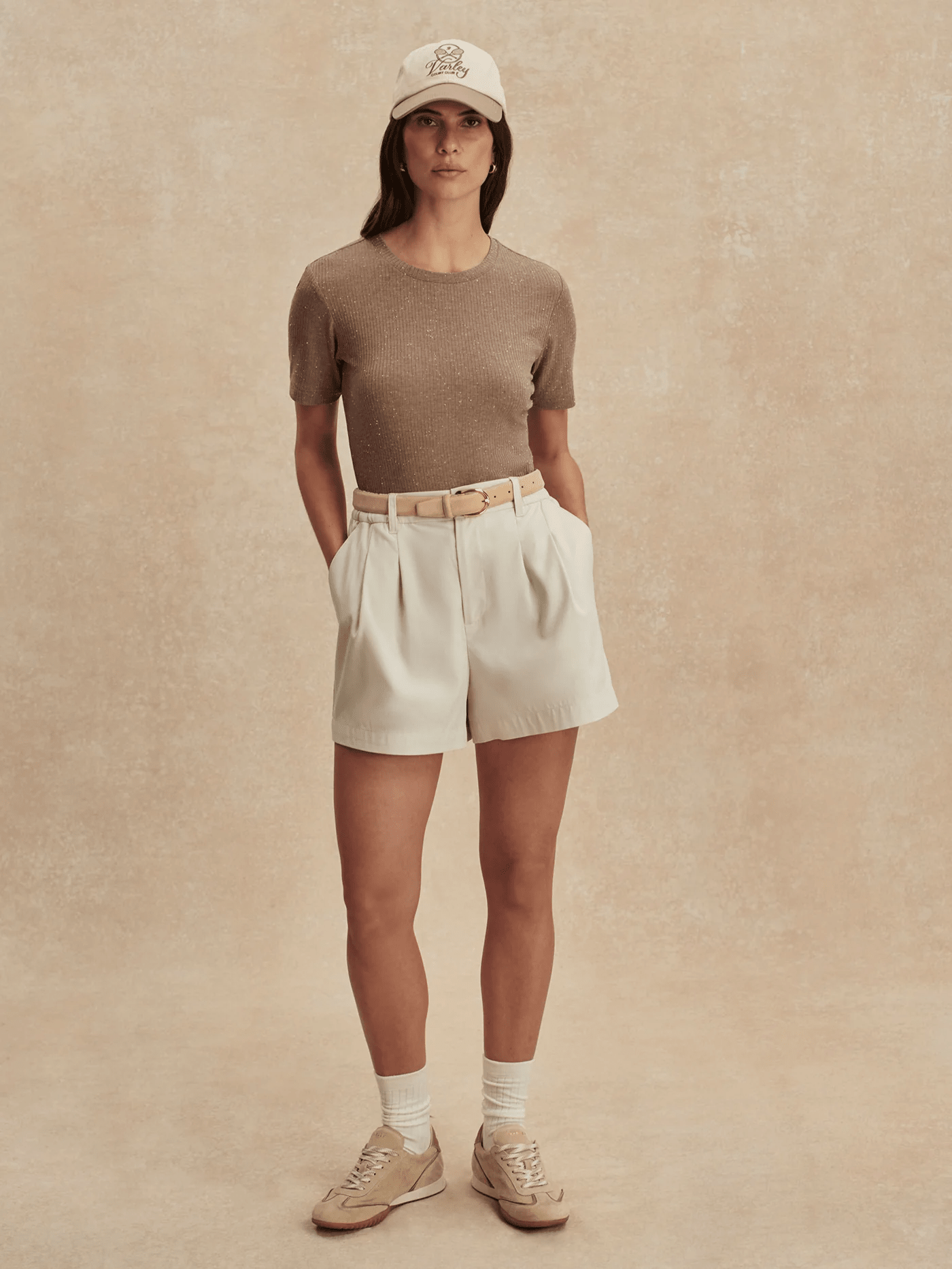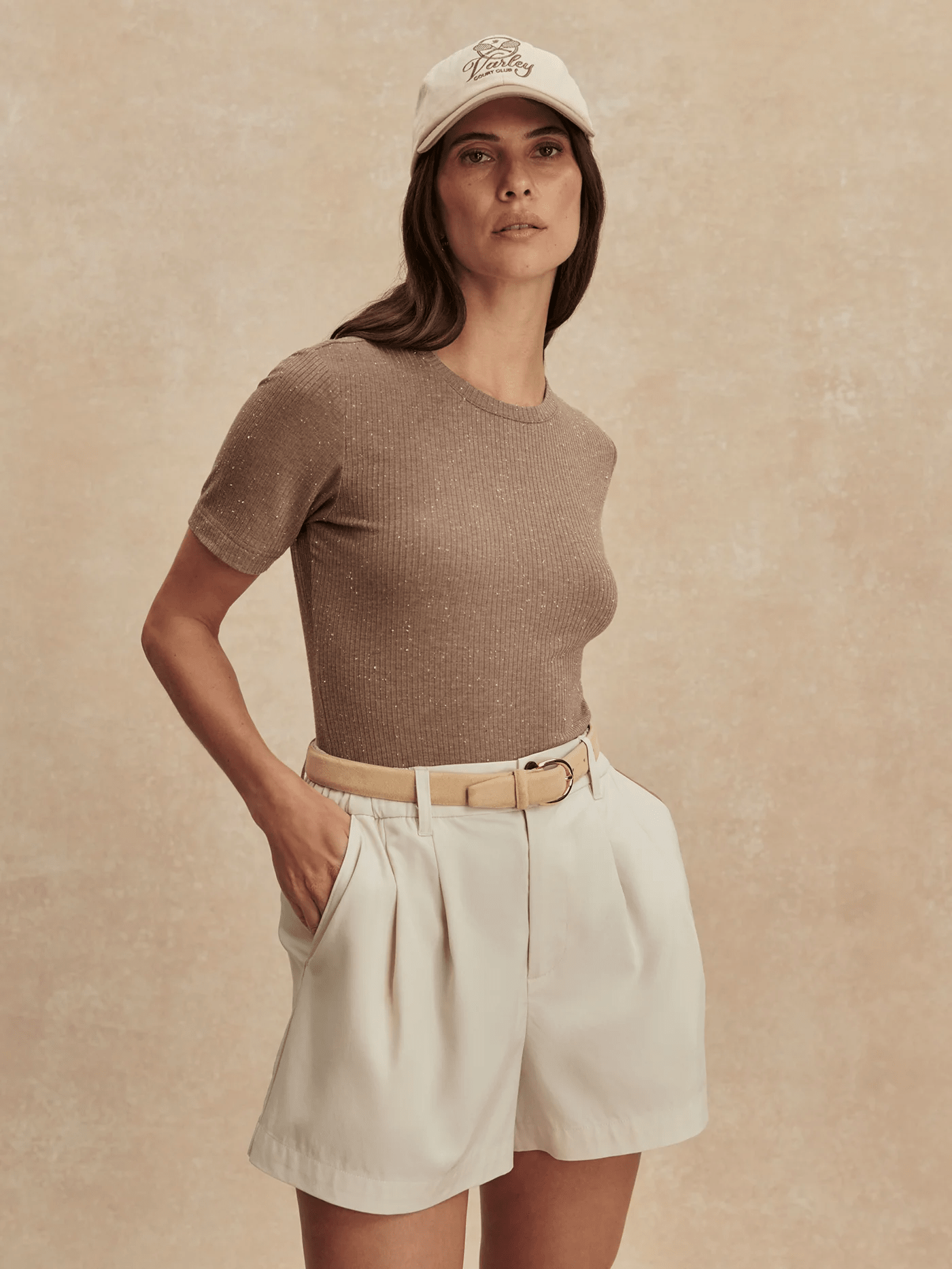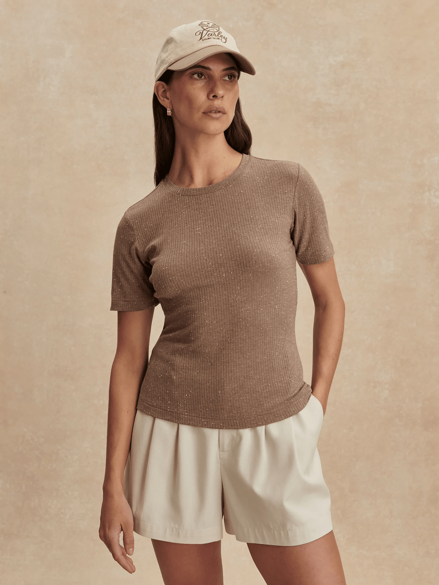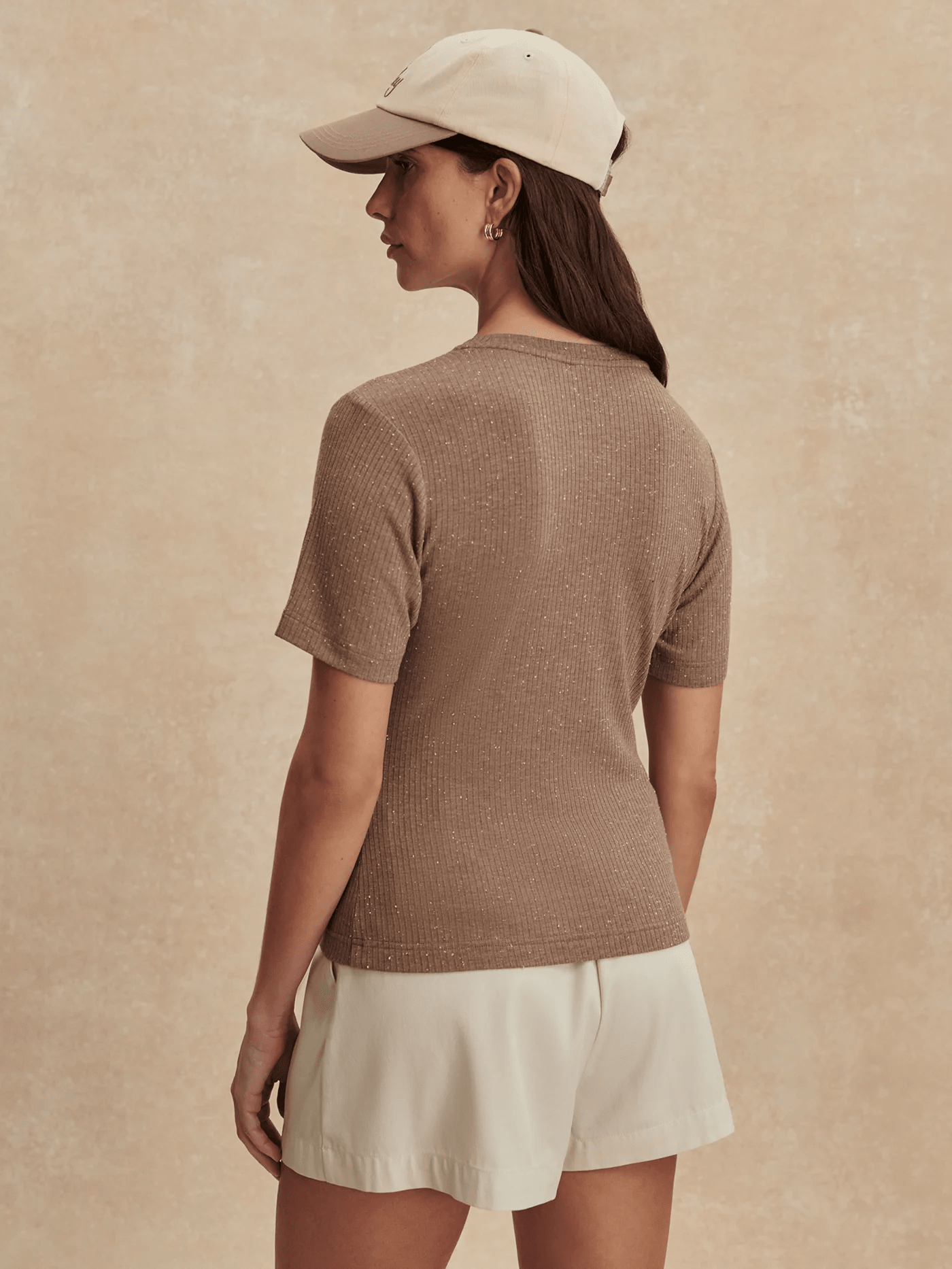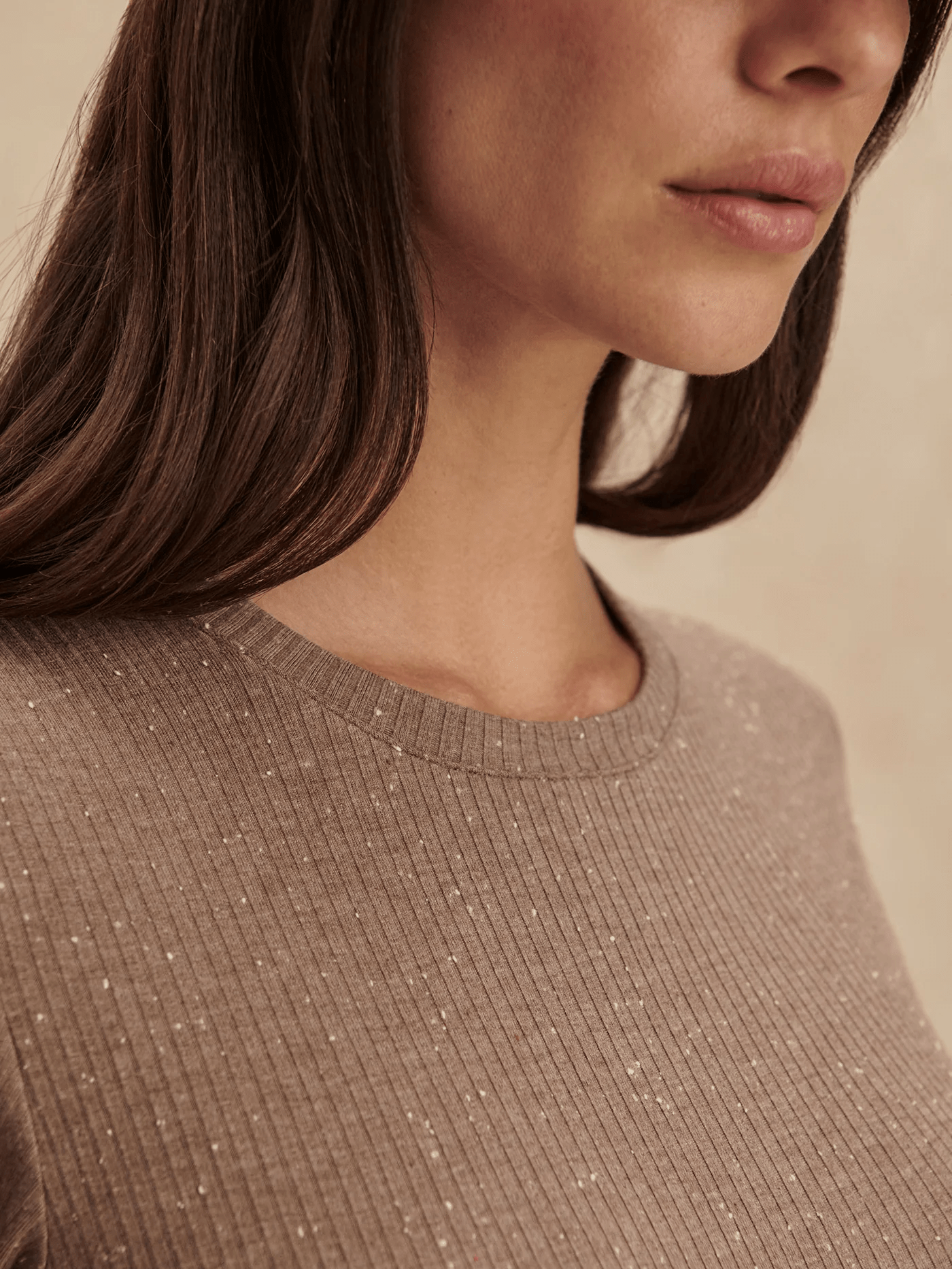 The Katrina is a fitted everyday tee with rib texture and contrast fleck detailing. It's cut to a flattering, slim silhouette with a classic crew neck, a slightly cropped length, and shaping at the waist. The perfect tee to tuck into pants or wear underneath a thicker top layer during colder months.