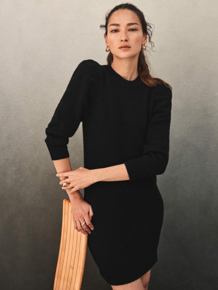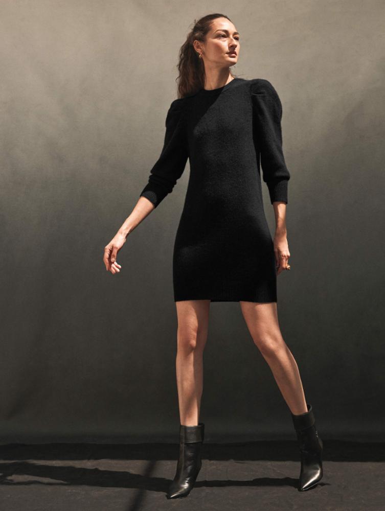 W+W - Cashmere Blend Puff Sleeve Dress #20539 Black