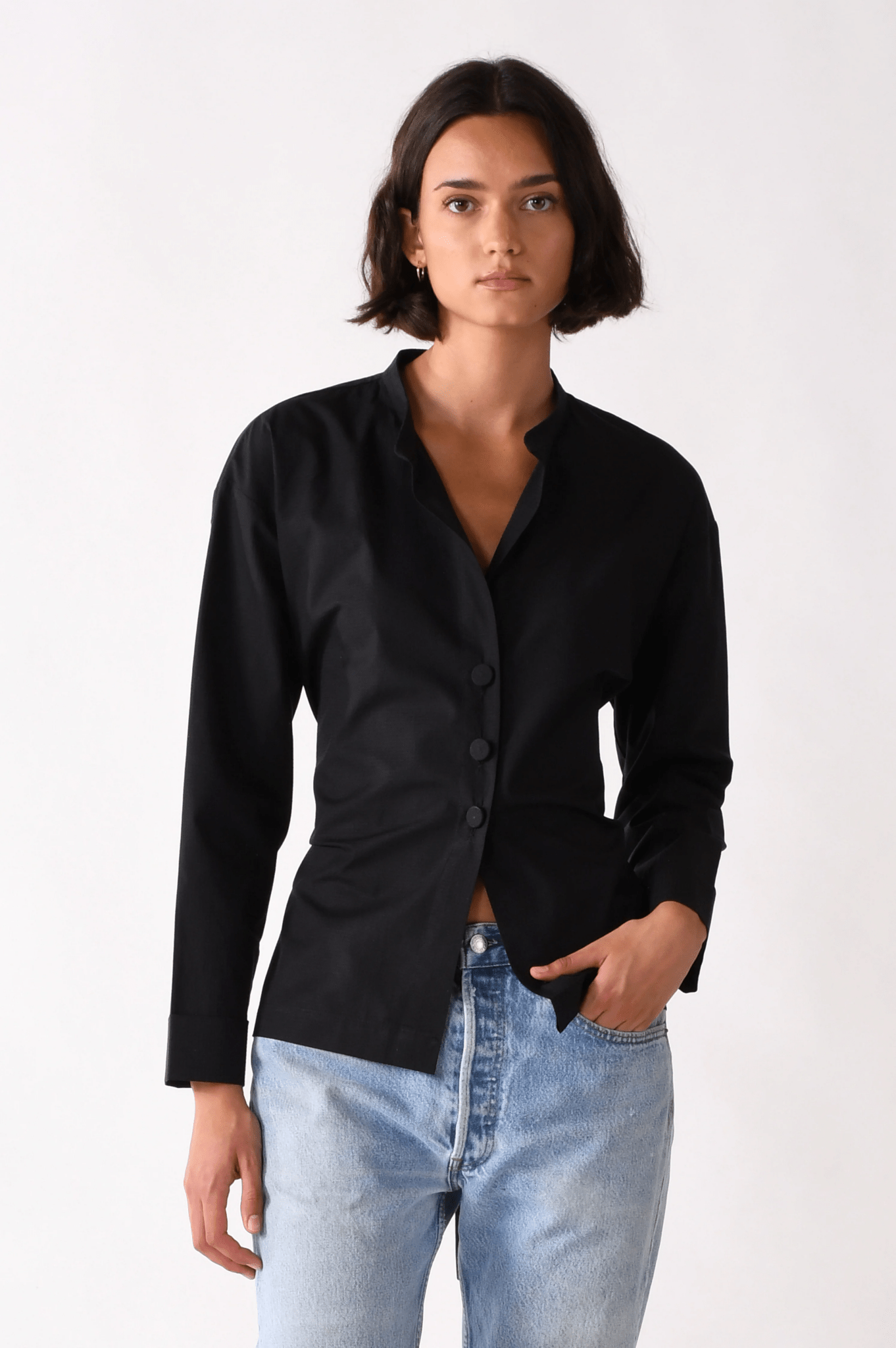 The BOW BACK Shirt, 100% Organic Cotton in Black Dobby